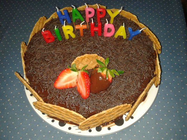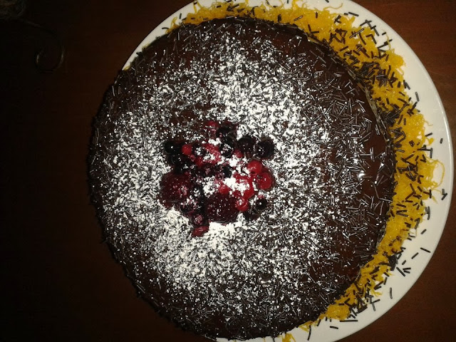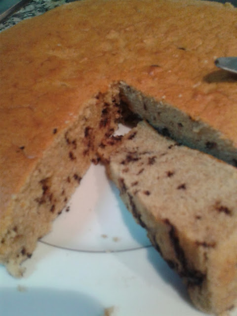 Depois fizemos o bolo, ou melhor, eu fiz, ela foi brincando e depois ajudou a misturar os confetis de chocolate negro e branco.